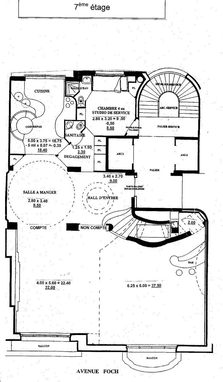 Dans un très bel immeuble de style Art Déco, rare loft type atelier d'artiste organisé en duplex aux 7ème et 8ème étages, accessible par ascenseur. Baigné de lumière, cet appartement unique aux volumes généreux présente une hauteur sous plafond de près de 7 mètres dans les réceptions, des vues panoramiques sur les jardins de l'Avenue Foch et lointaines sans aucun vis à vis et l'agrément de larges balcons pouvant accueillir une petite table et quelques chaises.